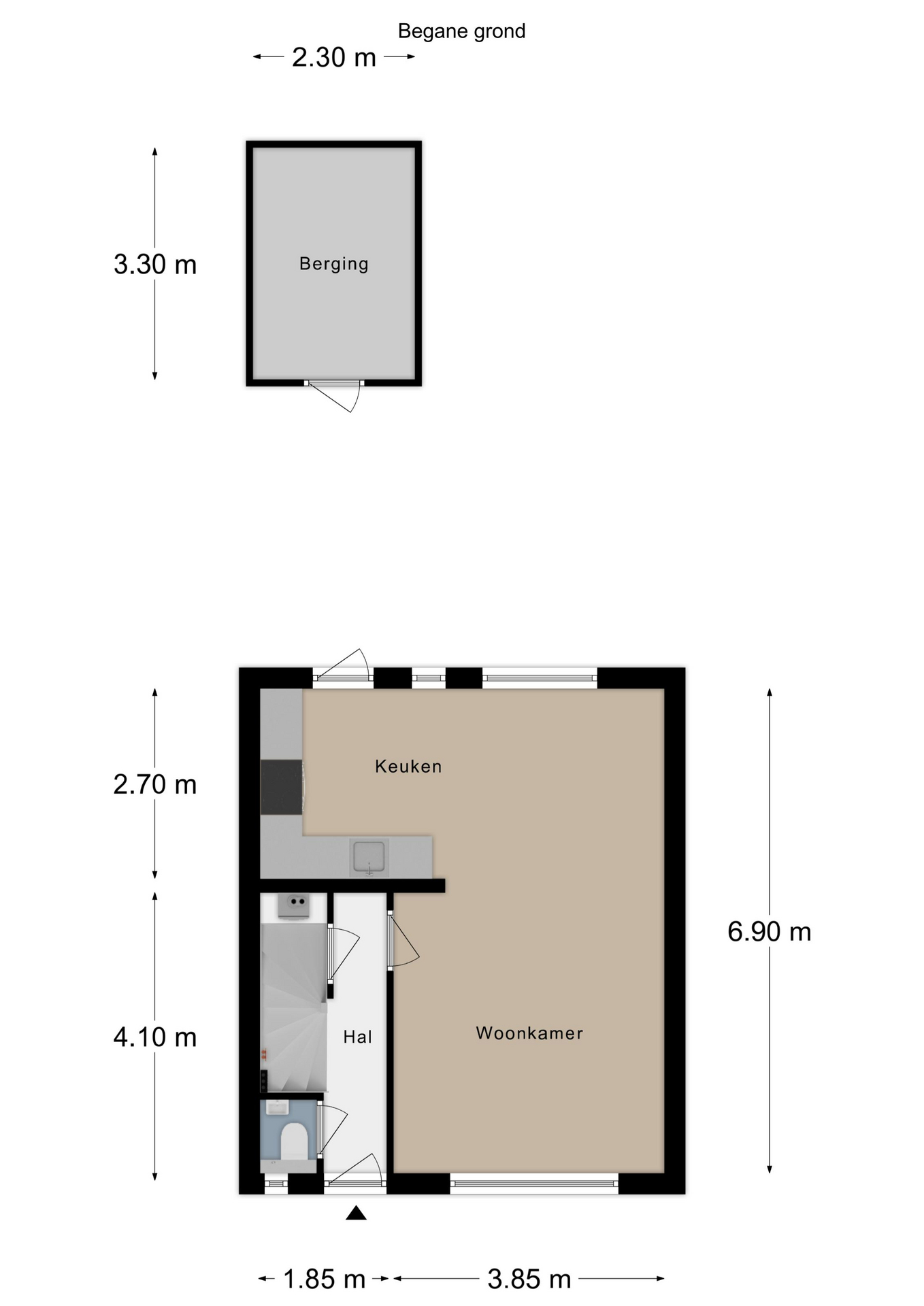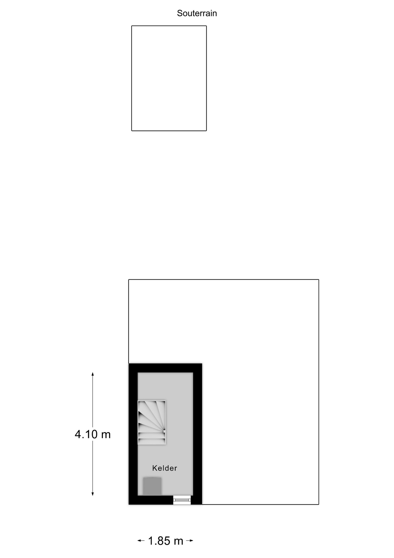 Souterrain: provisiekelder 4.11 x 1.88 (hoogte 1.92), alwaar aansluiting wasapparatuur, standplaats cv-ketel.