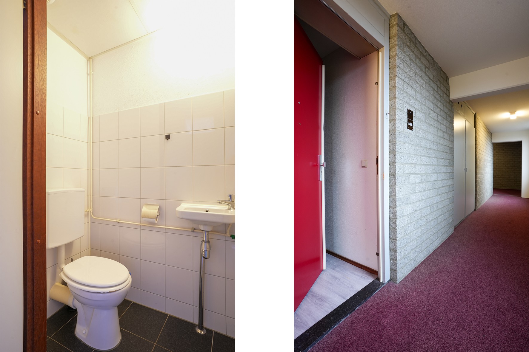 Elke voordeur ligt aan een gesloten corridor, met toegang naar meterkast en cv-ruimte. Het appartement is gelegen op de vierde verdieping.
