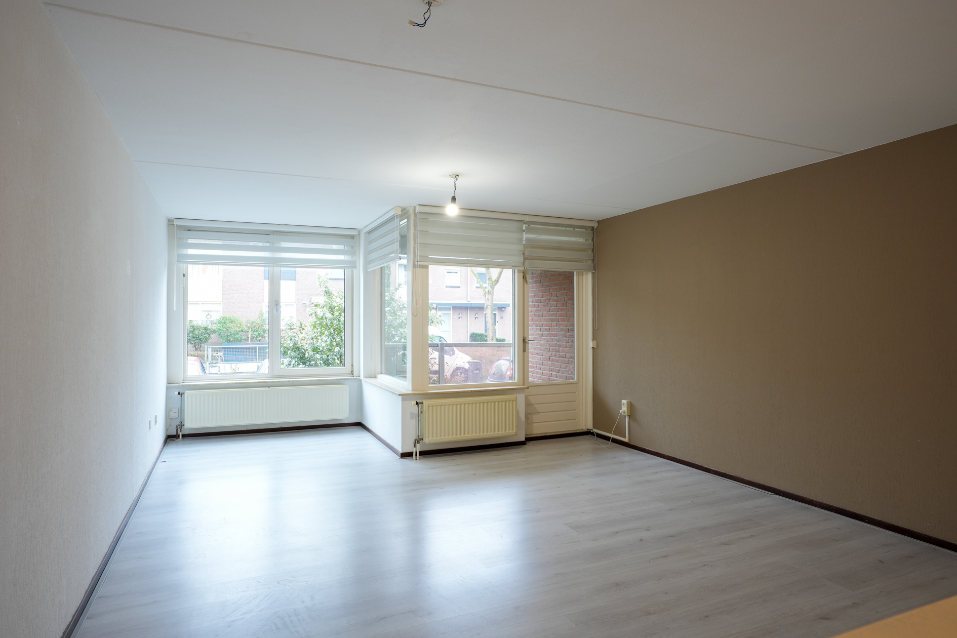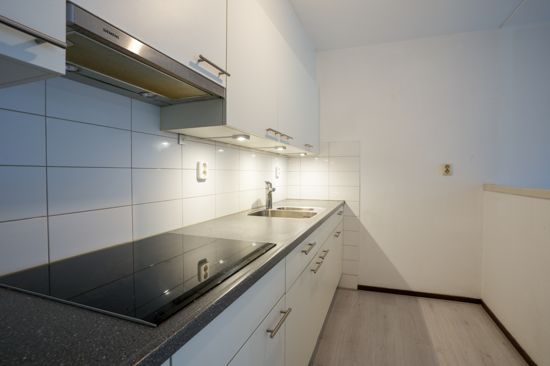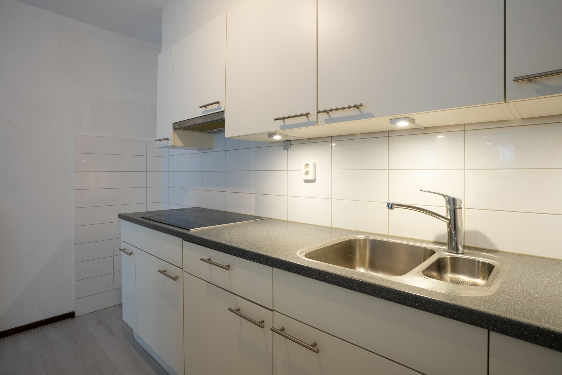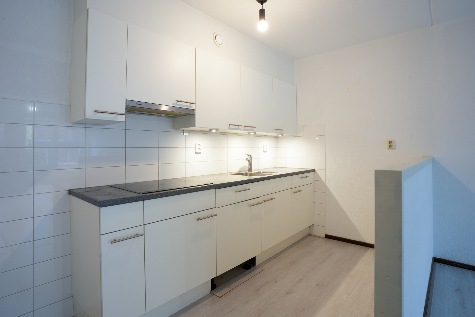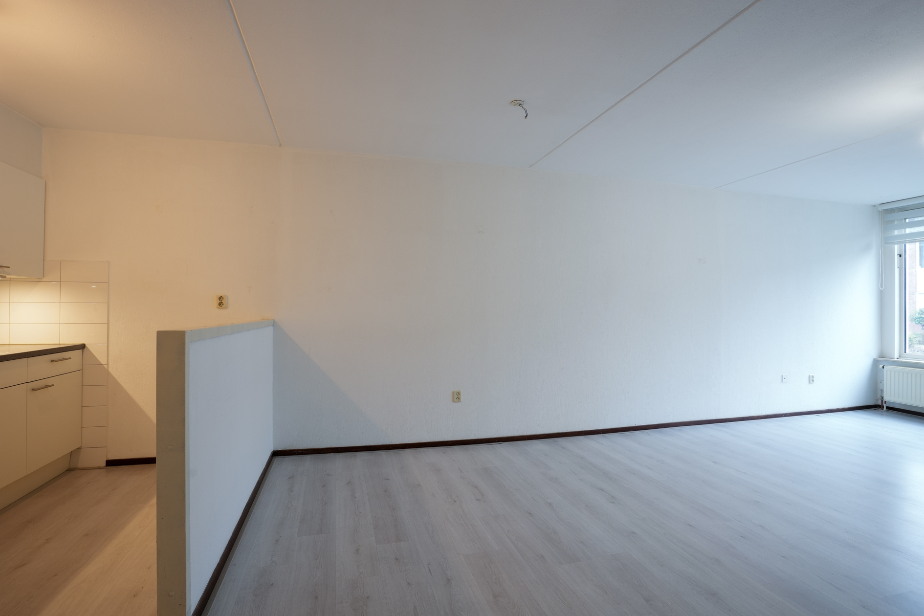 Appartement op eerste woonlaag voorzien van laminaatvloer (m.u.v. badkamer, toilet en slaapkamers): hal/entree; meterkast; cv-ruimte; bergkast; woonkamer met veel lichtinval, en een open keuken voorzien van een keukenblok met inductiekookplaat afzuiging en bovenkasten; vanuit de woonkamer heeft men toegang naar balkon aan voorzijde; twee slaapkamers 3.80 x 3.30 en 3.80 x 2.40; badkamer met inloopdouche, wastafel en aansluiting wasapparatuur.