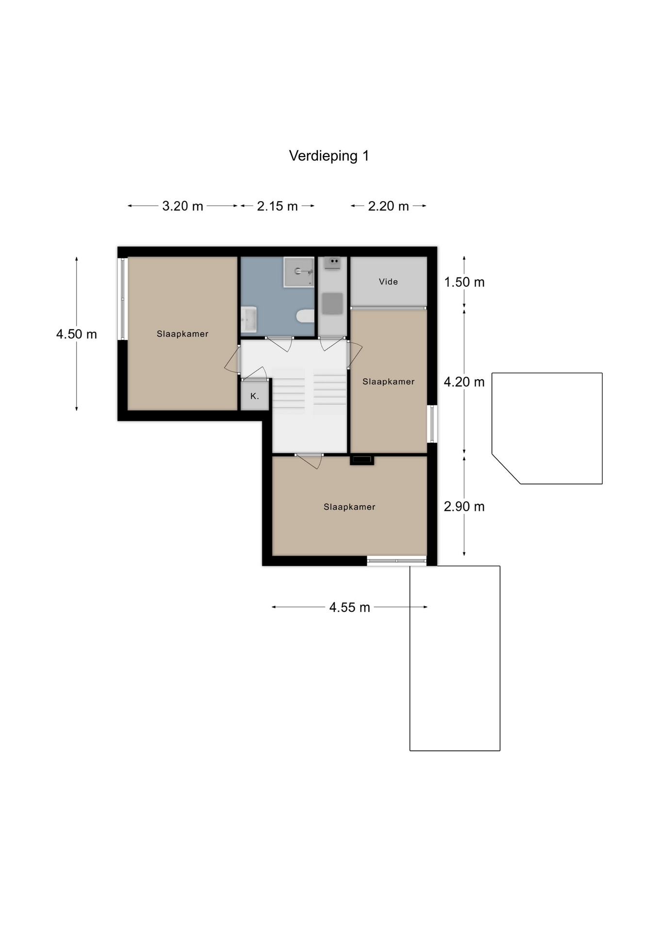 Niveau 2: slaapkamer 4.55 x 2.90.