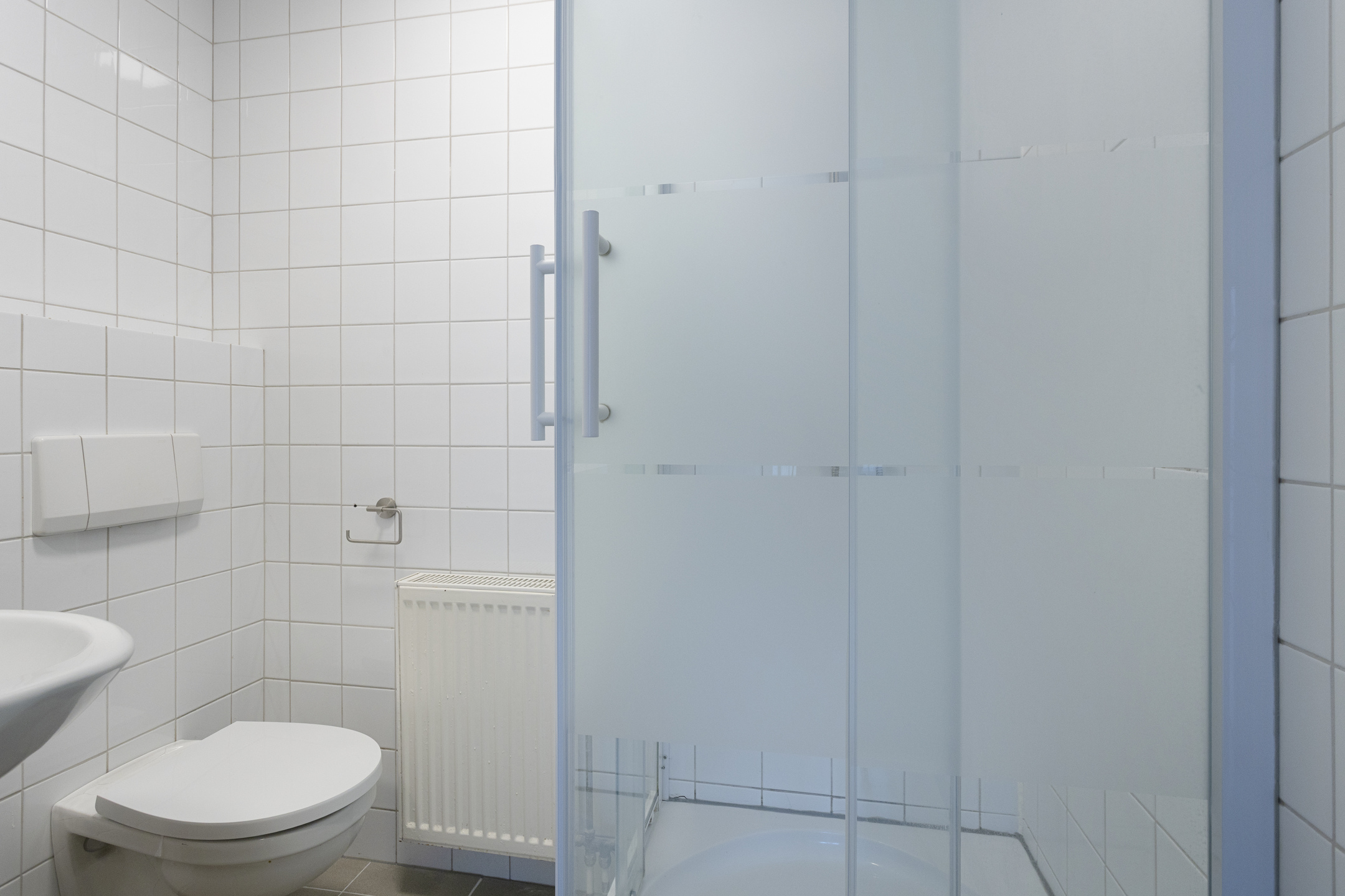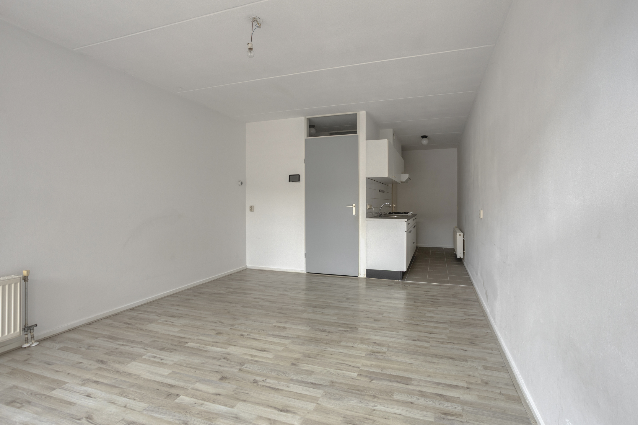 De studio beschikt over een open keuken, een nette badkamer, een praktische interne berging en een lichte woonkamer met laminaatvloer. Via de woonkamer stap je zo je privéterras op – jouw eigen stukje buiten in de stad.