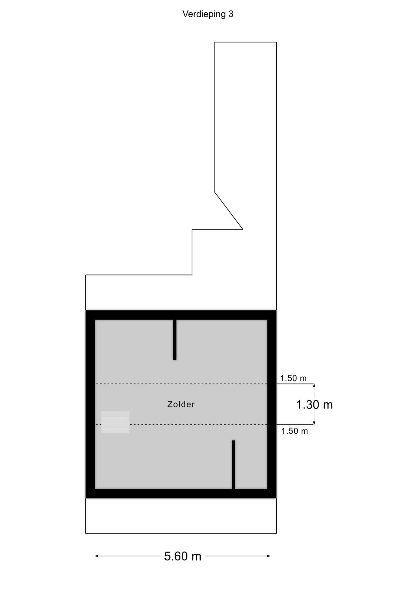 Bergzolder: bereikbaar via grote slaapkamer middels vlizotrap (5.73 x 1.20, gemeten vanaf 1.50 meter lijn).
