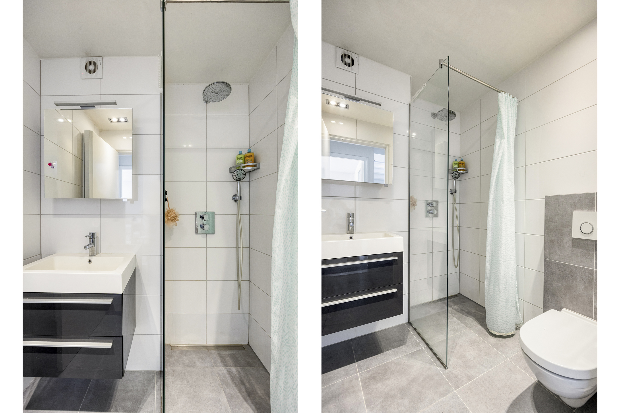 De badkamer met 2e toilet en inloopdouche bevinden zich ook op de eerste verdieping.